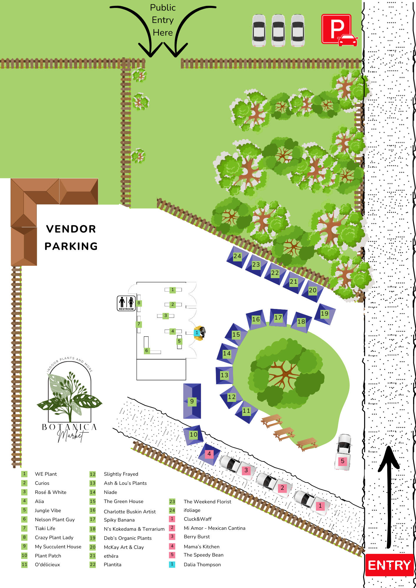 Vendor parking is available behind the shed at a first in first served basis. Plenty of paddock parking available once full or closed off by vendors.Facilities: