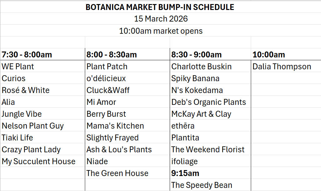 Bump-in details will be provided closer to the time. Stalls inside shed will be given the option to bump-in on Saturday. Bump-in schedule for stalls outside will be shared.